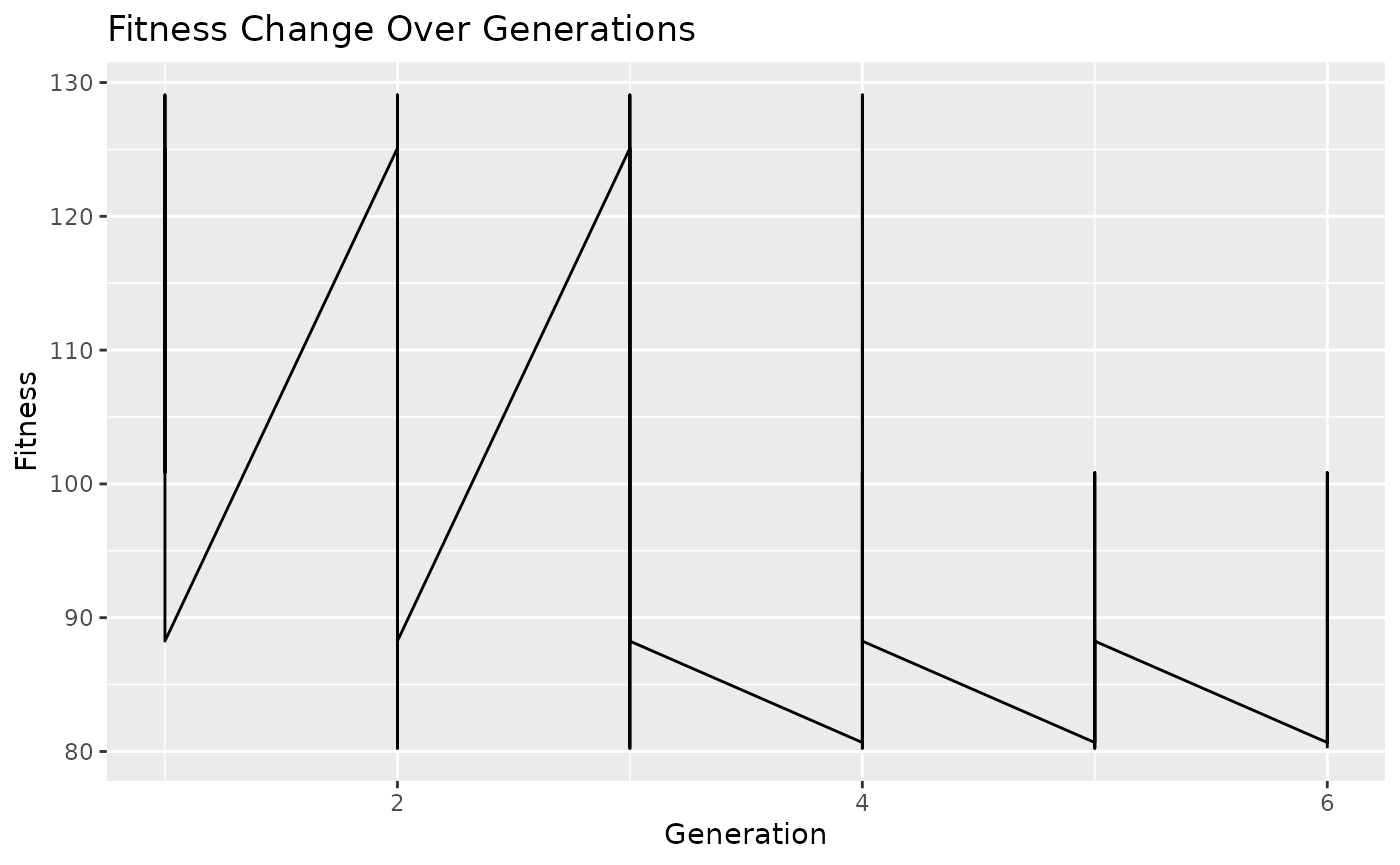 # Plot fitness change over generations