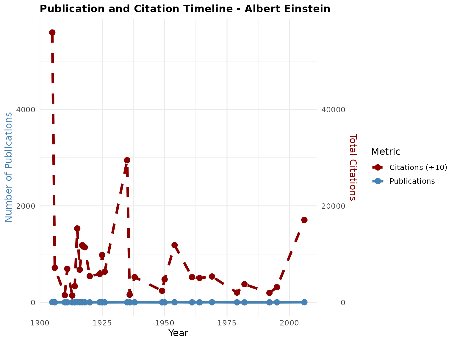 p1 <- PlotCitationImpact(scholar_data, plot_type = "summary")
