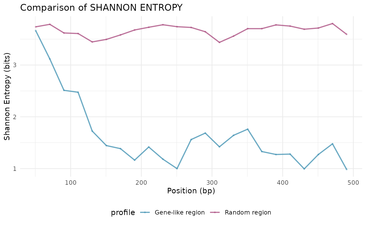 - In non-coding DNA, codons appear randomly (high entropy)