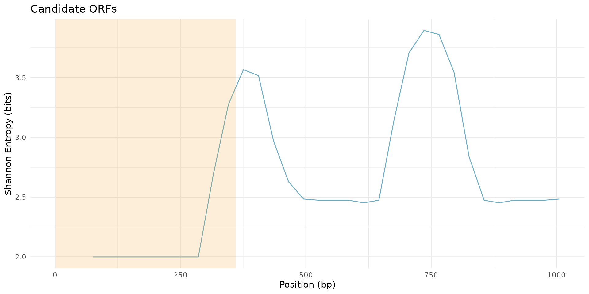 plot_candidate_orfs(scan_result, candidates, peaks, metric = "shannon_entropy")