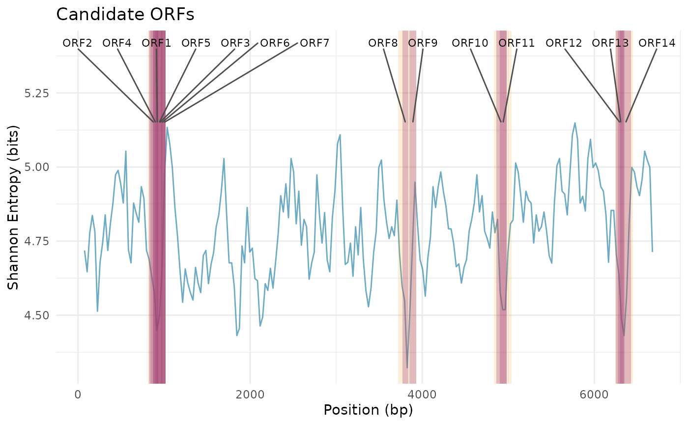 Candidate ORFs within Low-Entropy Peaks