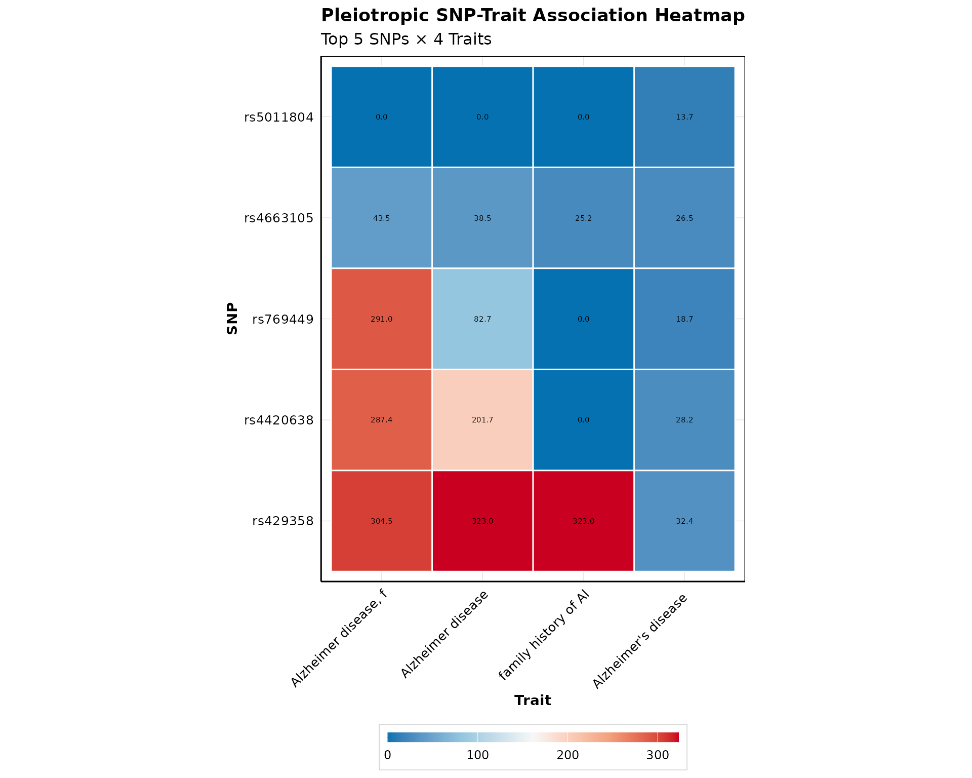 Create a heatmap showing SNP-trait associations: