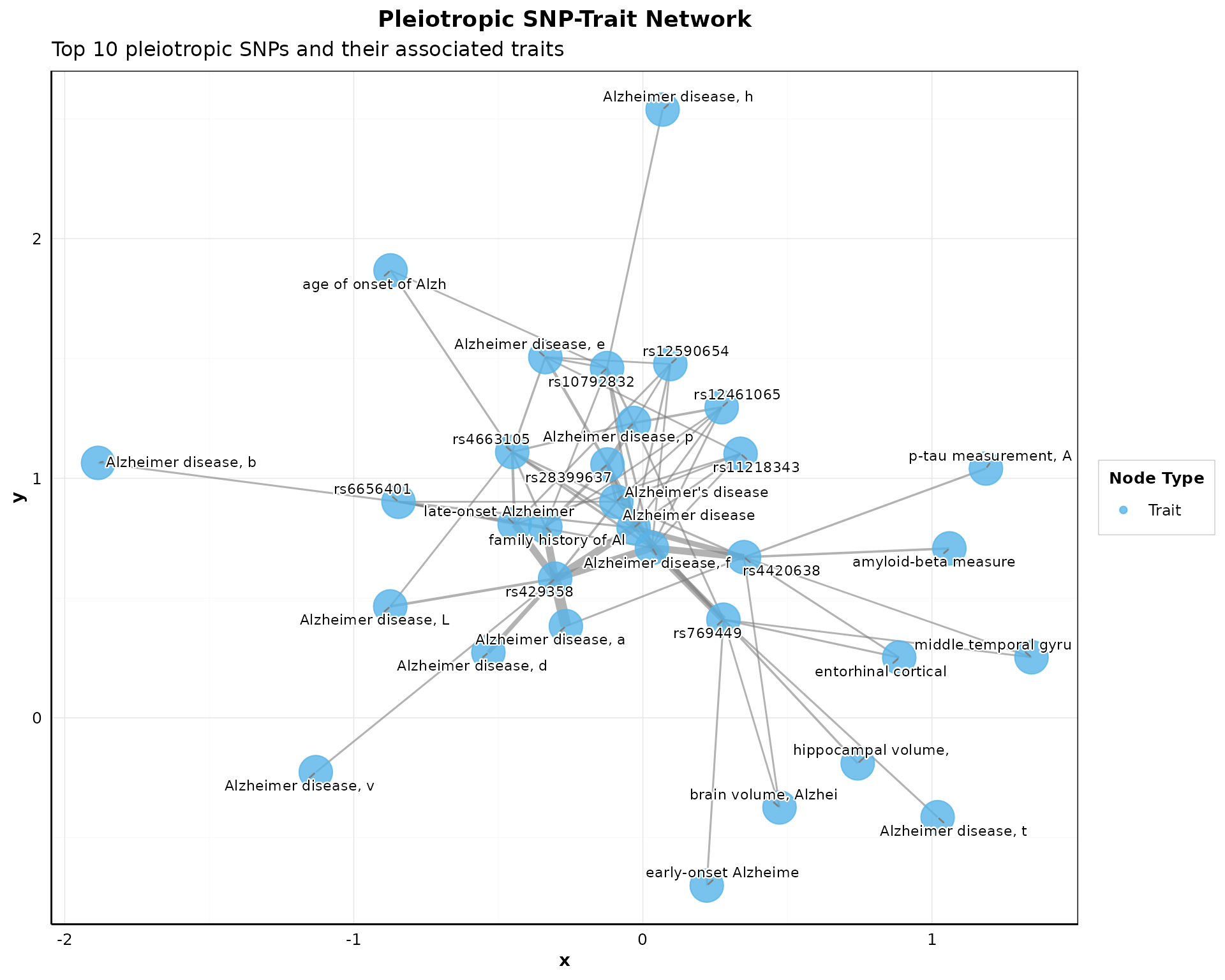 Visualize connections between pleiotropic SNPs and their associated traits: