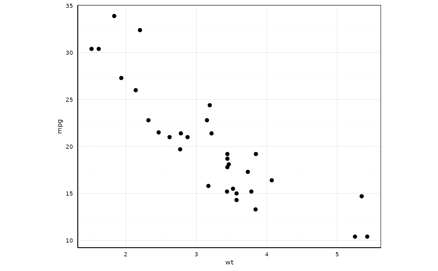 p <- ggplot(mtcars, aes(x = wt, y = mpg)) +